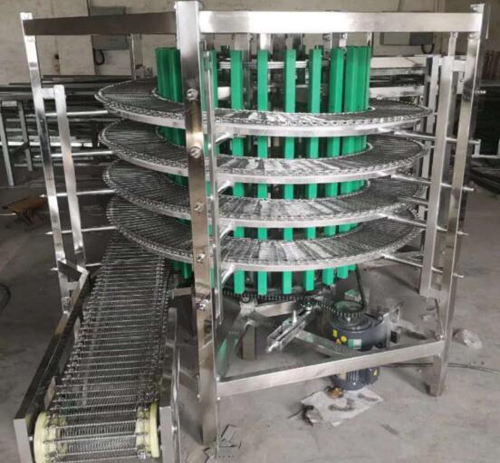 螺旋冷卻塔是一種常用的連續(xù)性輸送機械,它是利用工作構(gòu)件即螺旋體的旋轉(zhuǎn)運動使物料向前運送,是現(xiàn)代化生產(chǎn)和運輸不可缺少的重要機械設備之一!螺旋冷卻塔的優(yōu)點:占地面積小,結(jié)構(gòu)簡單、合理。 動力消耗小,料槽磨損小 維修方便 冷卻效率高 ,傳送暢順、雜音少、低能耗、保養(yǎng)簡單、快速、安全。螺旋冷卻塔應用范圍:適用于冷卻漢堡,法式小面包,毛毛蟲,面包等產(chǎn)量較大,冷卻時間較長的品種,采用不銹鋼螺旋式冷卻輸送帶,PLC智能控制。在功能不變,結(jié)構(gòu)的變化帶來成本的變化,最終帶來了利潤的變化,使中小型食品廠買的起,用的起。螺旋冷卻塔選用不銹鋼螺旋網(wǎng)帶載體,網(wǎng)帶寬度300-900mm,層間距及層數(shù)依產(chǎn)量定制,冷卻時間20-120分鐘.冷卻產(chǎn)量大,可直接冷卻漢堡,吐司,甜面包,也可帶盤冷卻月餅,奶香包等.定制靈活,依據(jù)場地和產(chǎn)能設計直徑和網(wǎng)帶.單塔為上進下出或下進上出.雙塔為下進下出.我廠可根據(jù)用戶的產(chǎn)量身訂做,打造經(jīng)濟實惠的非標螺旋冷卻塔,可大大提高生產(chǎn)效率。